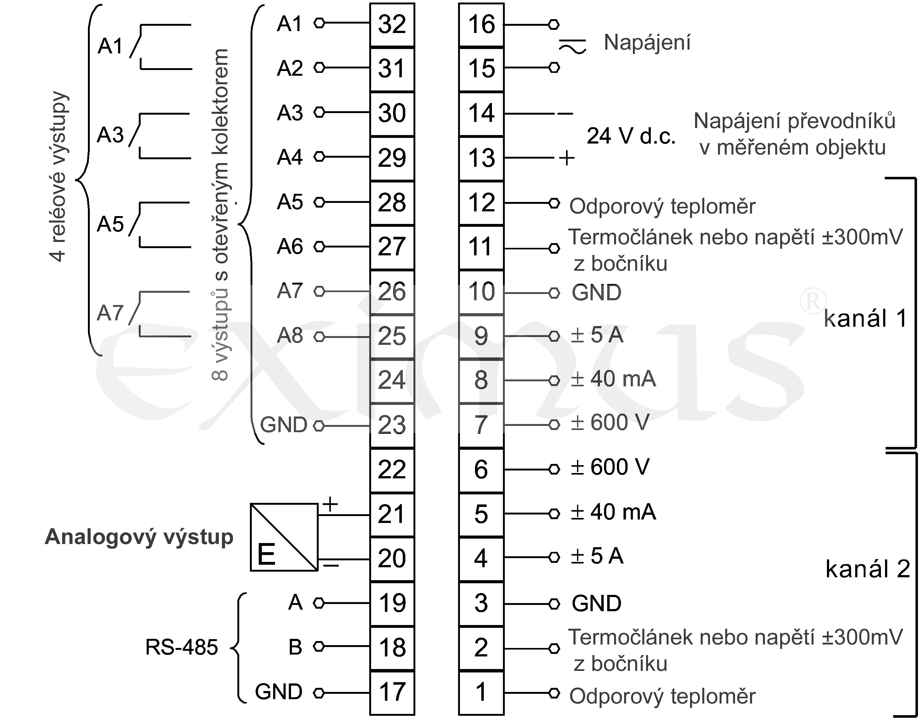 | Vstup přístroje | Pt100, Pt500, Pt1000, Termočlánek J (Fe-CuNi), Termočlánek K (NiCr-NiAl), Termočlánek N, E, R, S, T, Odpor 0..10k ohm, +/- 300 mV dc, +/- 600 V dc, +/- 40 mA dc, +/- 5A dc |