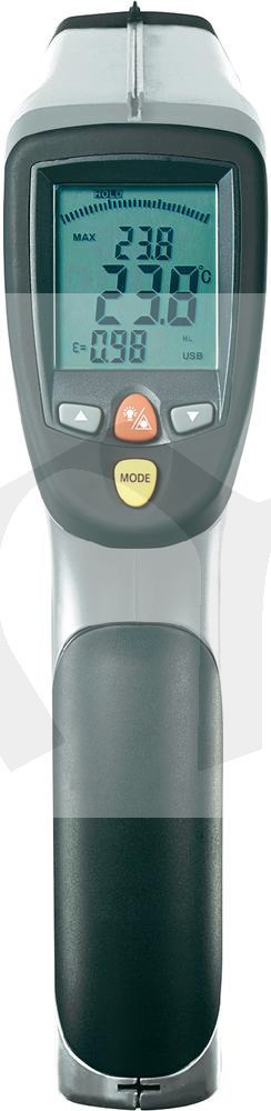 Prvotřídní infračervený teploměr od firmy Voltcraft IR2200 50D nabízí špičkovou technologii a díky ochraně povrchu pogumováním je velmi odolný. Mezi další přednosti patří rychlá reakční doba, široký rozsah měření teplot, výborná přesnost a dvojitý zaměřovací laser. Dále můžete měřit teploty pomocí čidla typu K. IR2200-50D USB má rozhraní USB a integrovanou paměť pro 99 naměřených hodnot. Naměřené hodnoty měření mohou být pomocí USB rozhraní přeneseny do počítače, dodávaný software umožňuje provádět trvalé měření a dlouhodobou kontrolu.