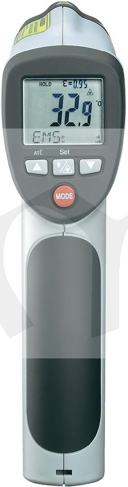 IR teploměr s mnoha funkcemi. Vedle standardních měřících funkcí má tento přístroj funkci nastavení stupně emisivity pro neznámý povrch prostřednictvím kontaktního měření teploty (typ K). Tak obdržíte vždy nejpřesnější naměřené hodnoty. Při překročení nastavené hodnoty alarmu se změní podsvícení na červenou barvu. Tak můžete snadno a rychle provádět kontrolu kvality.