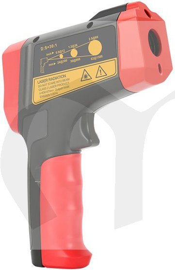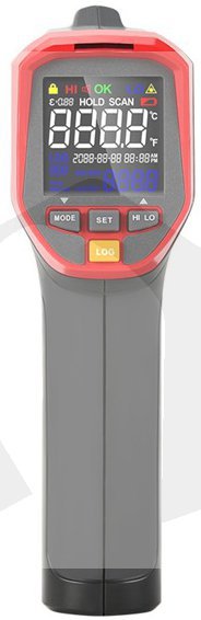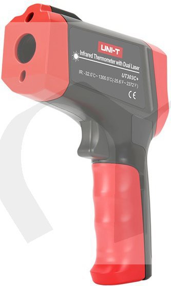 Infračervený teploměr UT 303C+ dokáže rychle a přesně určit povrchovou teplotu v rozmezí -32°C až +1300°C změřením infračervené energie vyzařované z cílového povrchu. Pro snazší a intuitivní zaměření přístroje na cílový povrch je zabudována jedinečná prstencová laserová indikace zaměření, kterou nabízí u svých přístrojů pouze firma Uni-Trend. Poměr vzdálenosti k průměru měřeného povrchu je u tohoto přístroje 30:1. Je možné přednastavit emisivitu měřeného povrchu v rozmezí 0,1 až 1,0 a 5 nejčastěji používaných emisivit uložit do paměti. Indikaci přednastavených funkcí a naměřených hodnot zajišťuje jasný a kontrastní EBTN barevný displej a hraniční hodnoty indikují LED diody červená, zelená a modrá u horního okraje přístroje a bzučák. Je možné nastavit systémový čas a naplánovat opakovaná měření v budoucnu s nastaveným intervalem a až 99 naměřených hodnot uložit do paměti. U každé uložené hodnoty je uložena i doba měření. Při těchto měřeních využijete zabudovaný standartní otvor pro připevnění ke stativu. Doba změření teploty je v 95% případů do 250msec. Je možné nastavit minimální a maximální mez hodnot a při naměření hodnot mimo tento interval je to akusticky a opticky indikováno. Je možná indikace minimálních, maximálních a průměrných teplot a odchylek od průměru ( MIN, MAX, AVG, DIF ).
