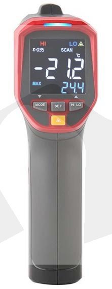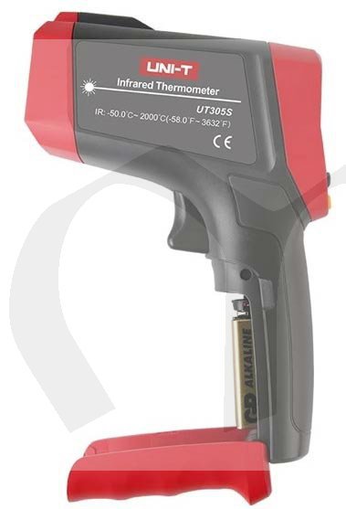 Profesionální bezkontaktní infračervený teploměr UT-305S dokáže rychle a přesně určit povrchovou teplotu v rozmezí -50°C až +2000°C změřením infračervené energie vyzařované z cílového povrchu. Pro snazší a intuitivní zaměření přístroje na cílový povrch je zabudován prstencový laser, který indikuje správné zaměření teploměru. Poměr vzdálenosti k průměru měřeného povrchu je u tohoto přístroje 50 :1. Tento teploměr je odolný proti pádu z výšky 1 metru. Je možné přednastavit emisivitu měřeného povrchu v rozmezí 0,1 až 1,0. Indikaci přednastavených funkcí a naměřených hodnot zajišťuje jasný a vysoce kontrastní EBTN barevný displej a hraniční hodnoty jsou indikovány bzučákem a na displeji. Je možná indikace minimálních, maximálních a průměrných teplot a odchylek od průměru ( MIN, MAX, AVG, DIF ). Teploměr se automaticky vypíná, kvůli snížení spotřeby, pokud je bez použití po dobu 15 s v režimu HOLD a po 10 s v ostatních režimech. Doba změření teploty je v 95% případů do 250msec.