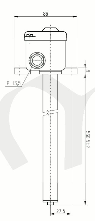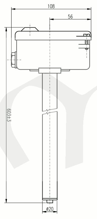 Termostat sestává ze spínací hlavice a teplotního čidla. Teplotně citlivý element je stonek, tvořený mosaznou trubkou, jejíž dilataci přenáší na spínací mechanismus invarová tyč. Spínací mechanismus tvoří mžikový jednopólový přepínač. Stupnice vypína­cích teplot je označena přímo na regulačním knoflíku. Spínací ústrojí termostatu je uzavřeno v hlavici. Montáž termo­statu se provádí dvěma šrouby za patky na hlavici termostatu. Při montáži je nutno zajistit, aby stonek nebyl mechanicky namáhán. Při použití termostatu na zařízeních s otřesy je nutno stonek na volném konci uchytit, ovšem tak, aby mohl dilatovat, a dále je nutno nastavenou teplotu zaaretovat dotažením aretačního šroubu. Pro spínání stejnosměrného prou­du jsou kontakty přemostěny kondenzátory.