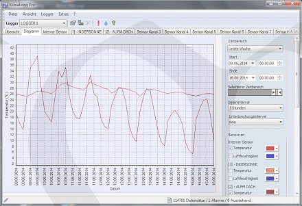 Navíc lze nastavit interval měření a to vždy jeden pro všechny měřící senzory (na výběr je 1, 5, 10, 15 nebo 30 minut a 1, 2, 3, 6 hod). Stanice komunikuje až s osmi čidly a ukládat záznamy do paměti lze z libovolného počtu čidel, to si nastavuje uživatel sám. Přístroj svému uživateli nabízí také rádiem řízené hodiny (DCF).