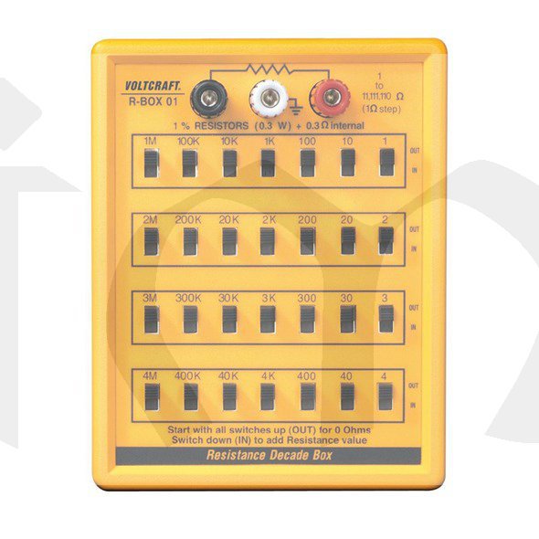 Připojení je provedeno pomocí banánku pr.4 mm. Tato dekáda je nepostradatelnou pomůckou při výuce, v údržbě, servisu a školení.