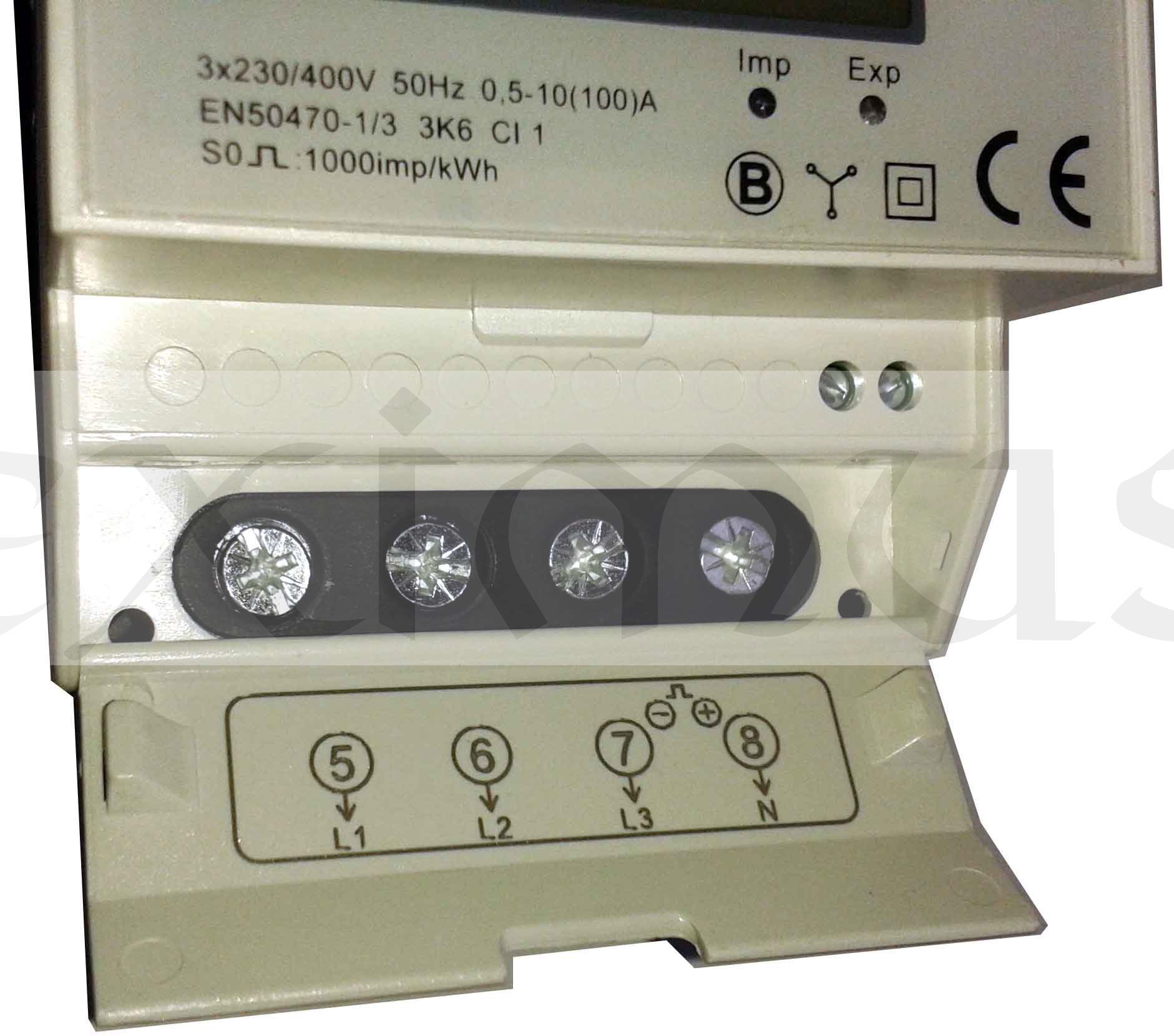 Třífázový, jednosazbový elektroměr na lištu DIN