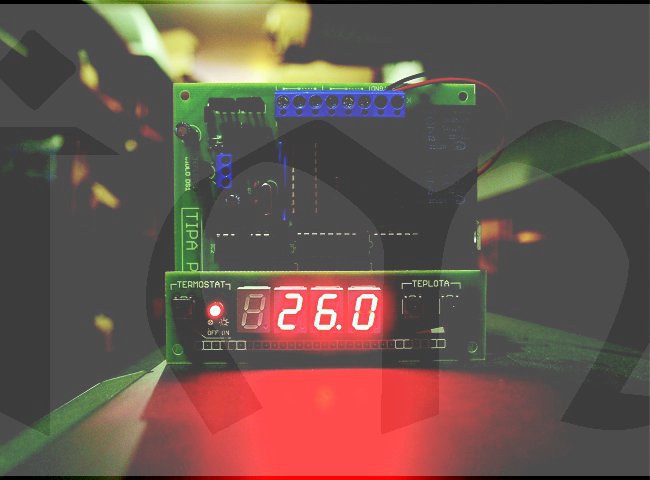 - v režimu termostatu se pomocí tlačítek nastavují dvě hodnoty teploty: nad větší z nich sepne jedno relé, pod menší z nich sepne druhé relé. Termostat lze také stiskem jednoho tlačítka vypnout, či znovu zapnout.