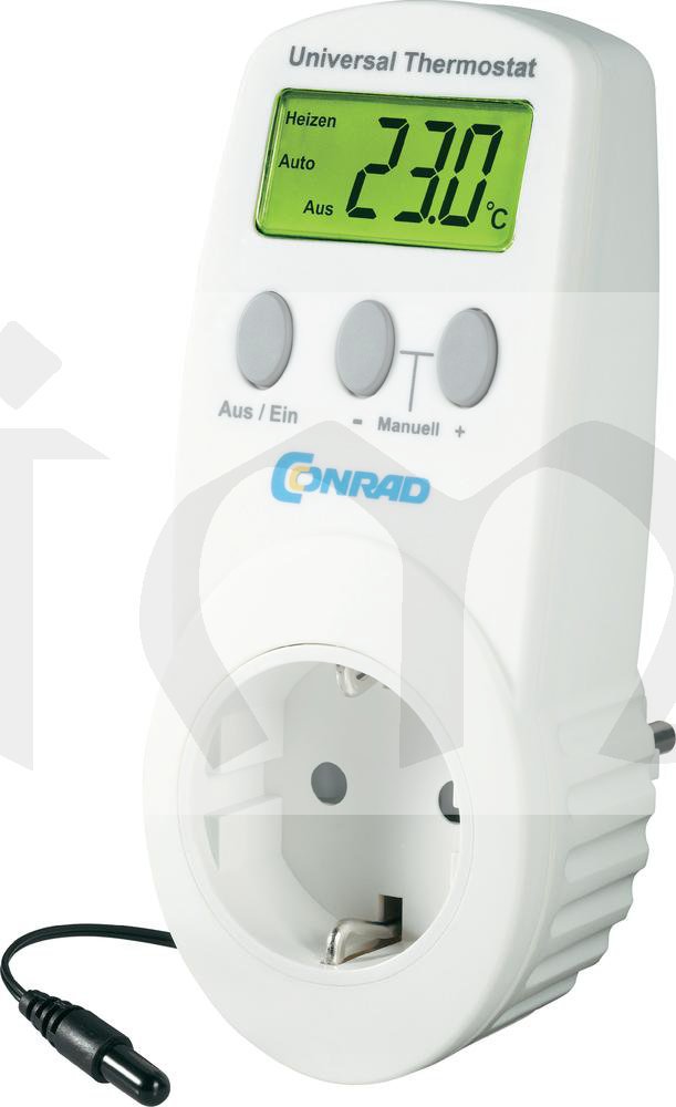 Elektronický termostat UT200 s univerzálním použitím se současným digitálním zobrazením zapínací a vypínací teploty a aktuální teploty. Termostat lze použít téměř ve všech oblastech, kde je potřebná regulace teploty v topném a chladícím provozu. Kromě použití jako samostatného přístroje může univerzální termostat sloužit i jako náhrada za vadné mechanické termostaty. Tak lze např. ledničku s vadným termostatem zapnout a vypnout přes termostat, který je umístěn v zástrčce těla zásuvky.