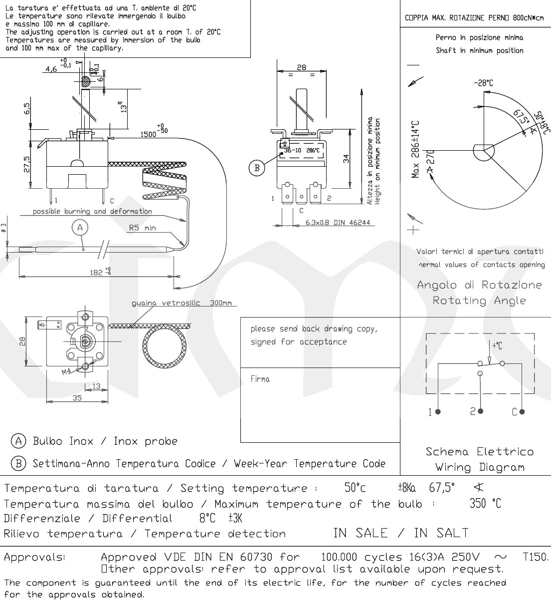 Termostat E1424, rozsah -28..+286°C;