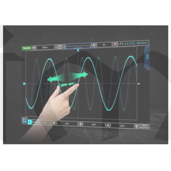 - automatické měření parametrů signálu: Max, Min, High, Low, Middle, Pk-Pk, Ample, Mean, Cycle Mean, RMS, Cycle RMS, Area, Cycle Area, OverShoot, PreShoot, Period, Freq, Rise, Fall, +Width, -Width, +Duty, -Duty, RiseDelay, FallDelay, Phase, FRFR, FRFF, FFFR, FFFF, FRLF, FRLR, FFLR, FFLF