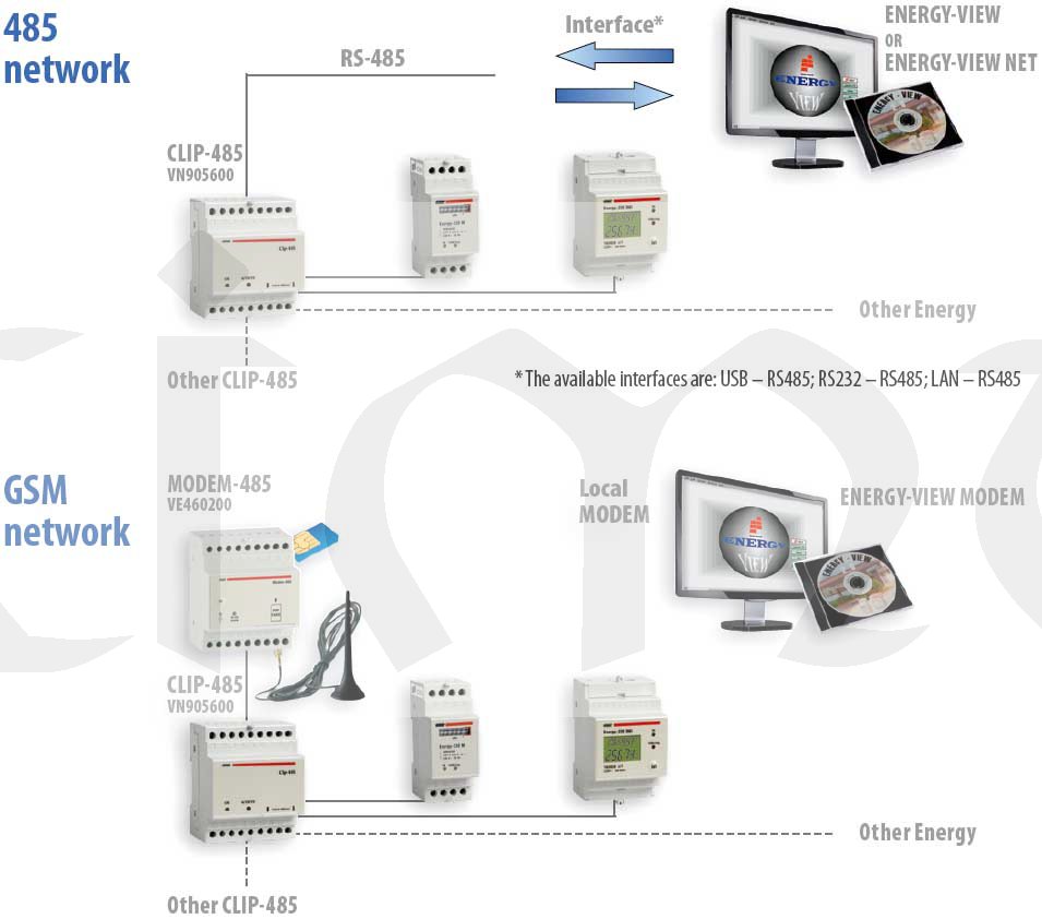 Zařízení pro síťové sledování odběrů elektrické energie- koncentrátor pro 8 měřených míst s interface RS485 modbus protokol