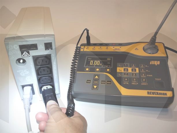 Pro měření odporu PE vodiče odnímatelných síťových přívodů nebo i zásuvek na záložních zdrojích (UPS) pro počítače, které jsou vybaveny pětihrannou přístrojovou zásuvkou IEC 320 C13 je určen adaptér P 8031 zakončený konektorem IEC 320 C14.