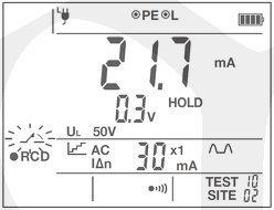 • Měření postupně narůstajícím proudem a impulzním proudem, s vybavením a bez vybavení proudového chrániče, typ A a AC