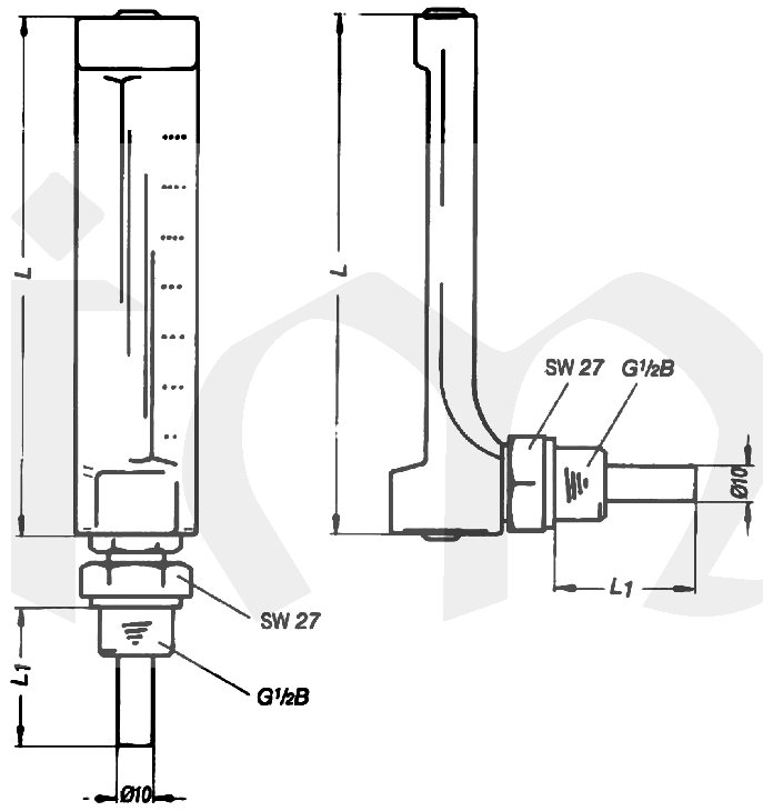 Teploměr úhlový T0206 0..+100°C/200x36mm, 100mm, G1/2"