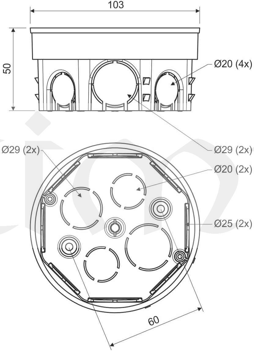 Kovová čtercová deska, plastová krabice a dvojice vrutů 3,5x35 se zápustnou hlavou (pozink).