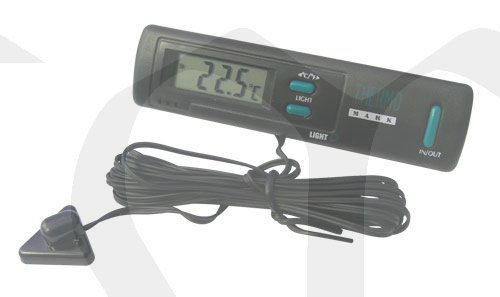 Autoteploměr s měřením vnitřní i venkovní teploty (in / out) s podsvětleným displejem.