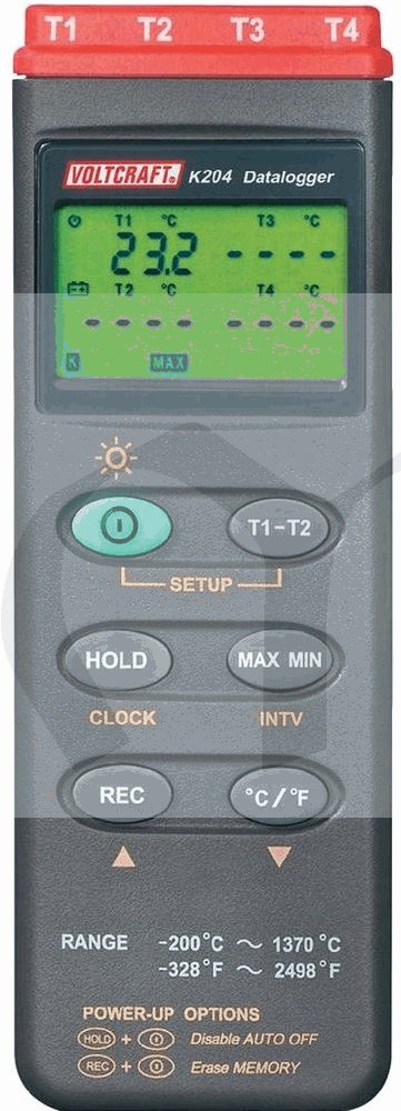 Teploměr profesionální řady s rozsahem měření -200 až +1370 °C s velmi vysokou přesností měření splní i ty nejvyšší profesionální požadavky. Přístroj je vybaven rozhraním RS-232, díky kterému můžete s dodaným softwarem přenášet data do svého počítače a zpracovávat je. K dlouhodobému sledování výsledků měření slouží integrovaná datová paměť (datalogger) až pro 16000 naměřených hodnot.