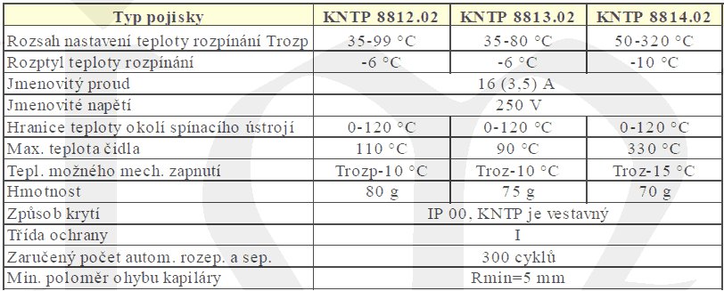 Pojistka KNTP8812.02, pevně nastavená teplota vypnutí na +92°C -6°C,