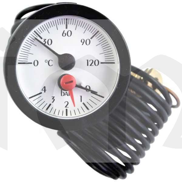 Termomanometr 0-120°C, 0-4 bar, kapilára 1 m, d=57,5 mm