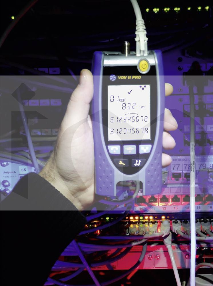VDV II Pro se snadno ovládá a umožňuje rychlou kontrolu měděných kabelů od hlasových, datových a video instalací, jako jsou telefonní linky, datové kabely bezpečnostní a video sítě, a to jak v domácnosti, tak v kanceláři a průmyslové prostředí. Prémiový model mezi testery kabelů ukazuje chyby ve vedení jako je přerušení, zkrat, špatné zapojení a prohozené páry, zatímco reflektometr TDR podporuje vyhledávání poškození. Rozpozná analogové (PBX) a digitální (ISDN) telefonní služby a ukazuje rychlost přensu dat v síti a duplex statusu. K dispozici je připojení pro konektory RJ11, RJ45, koax F a BNC. Zkoušečka je vybavena velkým podsvíceným LCD displejem a integrovaným remote adaptérem na spodní straně přístroje.