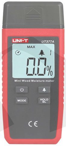 UT-377A je digitální měřič vlhkosti dřeva a lze jej také použít pro měření obsahu vody v papíru, překližkách, některých dřevotřískách, a jiných dřevitých materiálech. Přístroj dělí dřevo do čtyř kategorií na základě jeho hustoty a za pomocí algoritmu teplotní kompenzace zajistí velmi přesný výsledek měření. Malé rozměry přístroje, nízká spotřeba a vysoká přesnost dělá UT 377A skvělou volbou pro měření vlhkosti dřeva.
